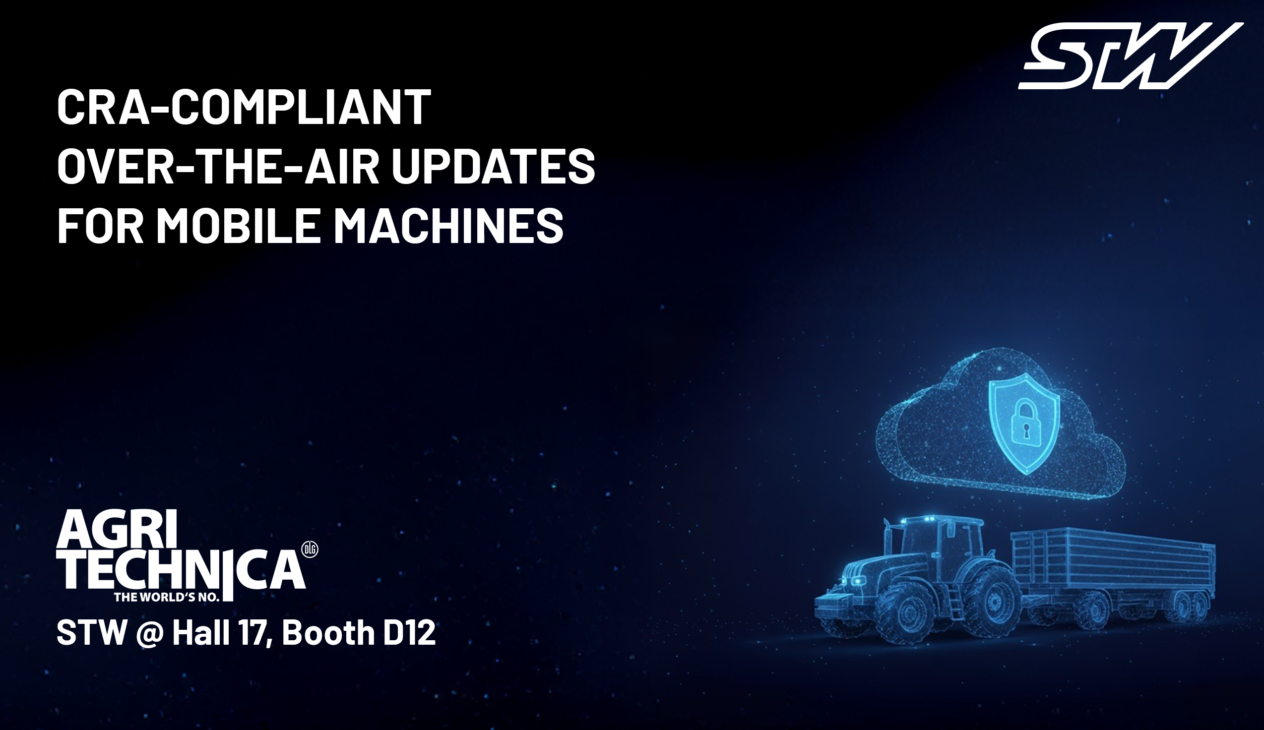Providing regular software and security updates for machines, some of which are used for decades, poses major challenges for manufacturers of agricultural machinery, construction equipment, and municipal vehicles. But this is exactly what the (upcoming) EU cyber security regulations, such as the Cyber Resilience Act (CRA), require. STW offers hardware and software solutions that help OEMs master the associated challenges.